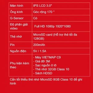 #VIETMAPC9 – # Camera hành trình Full HD góc rộng 170° – Hàng chính hãng bảo hành 12 tháng